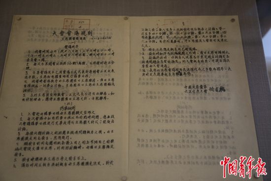 展廳第二部分“中共六大的籌備與召開”中展出的大會會場規(guī)則文件。中青報·中青網(wǎng)駐俄羅斯記者 張健/攝