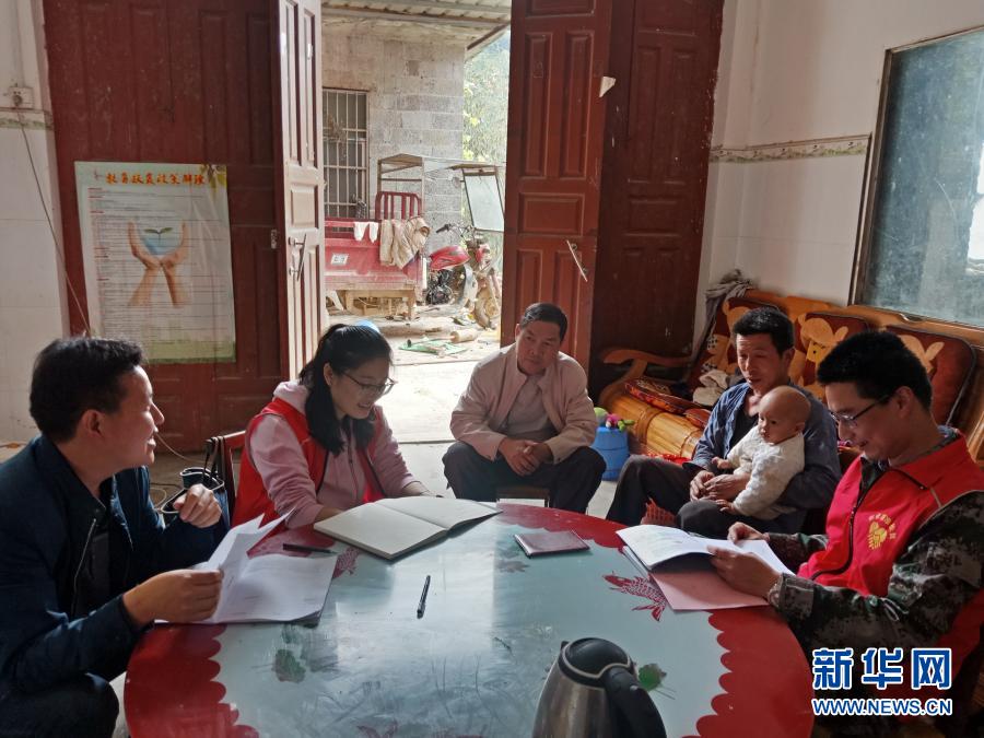 這是黃文秀(左二)生前下屯訪問貧困戶的資料照片。新華社發(fā)