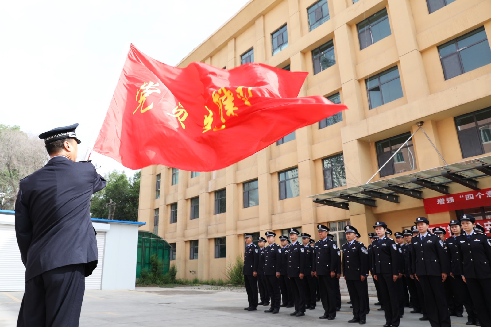 朱光輝率領(lǐng)誓師大會(huì)全體人員舉起右拳,面對(duì)黨旗莊嚴(yán)宣誓:在慶祝建黨100周年安保工作中,始終牢記“對(duì)黨忠誠、服務(wù)人民、執(zhí)法公正、紀(jì)律嚴(yán)明”總要求,以黨和人民為念,以維護(hù)安全為重,堅(jiān)持最高標(biāo)準(zhǔn),堅(jiān)定必勝信心,全力投入、全力以赴,堅(jiān)決打贏建黨100周年安保硬仗,確保絕對(duì)安全!