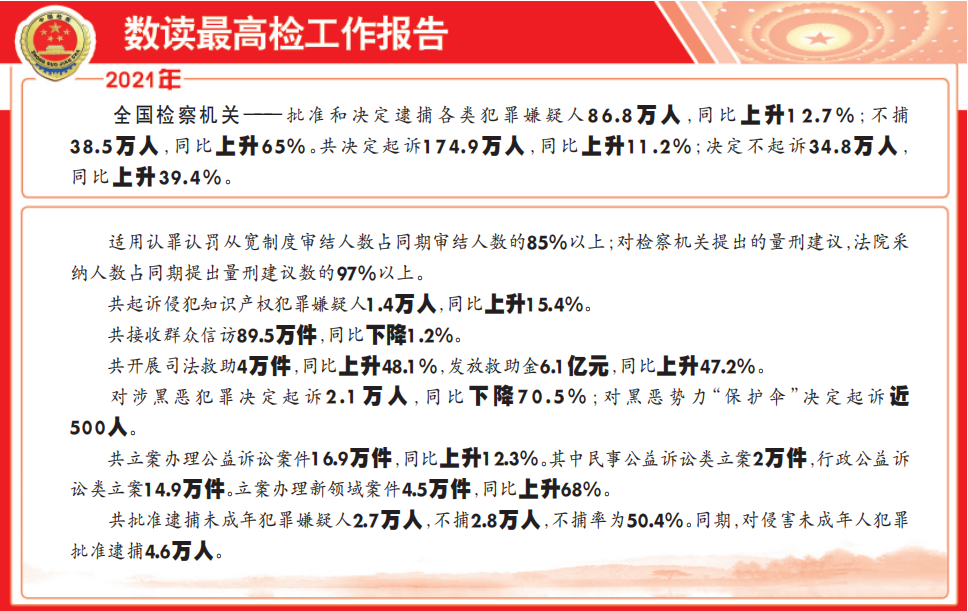 【報告解讀】2021年,最高檢開展“百件積案化解”攻堅行動,對100件長期信訪、矛盾突出、反映強烈、化解難度大的“釘子案”“骨頭案”開展集中攻堅,目前已經(jīng)全部辦結。