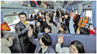 圖為佟麗華在農民工專列上普法。 受訪者供圖