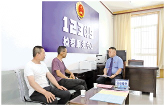 圖為王文喜(右一)在檢察服務(wù)中心接待來訪群眾。 本報通訊員 周潤霞 攝
