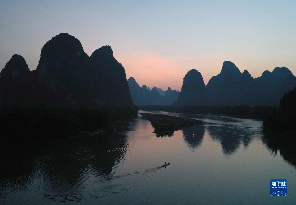 這是在廣西陽朔縣興坪鎮(zhèn)拍攝的漓江風光(2020年5月19日攝,無人機照片)。新華社記者 周華 攝
