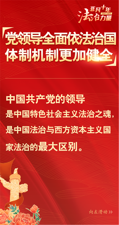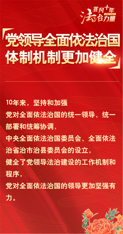法治網(wǎng)精心策劃制作十期海報,帶您一起領(lǐng)略非凡十年的法治力量!今天為您奉上第二期“黨領(lǐng)導(dǎo)全面依法治國體制機(jī)制更加健全”。